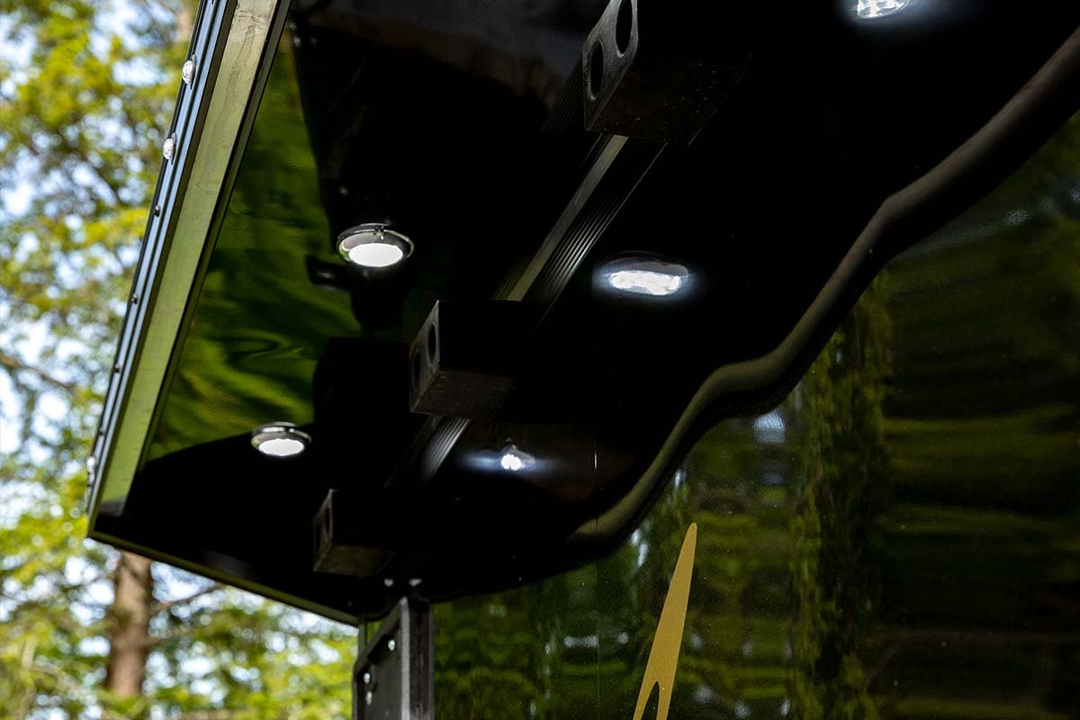 Ceiling-integrated LED puck lights efficiently illuminate the entire interior of your trailer without sacrificing any headroom.
