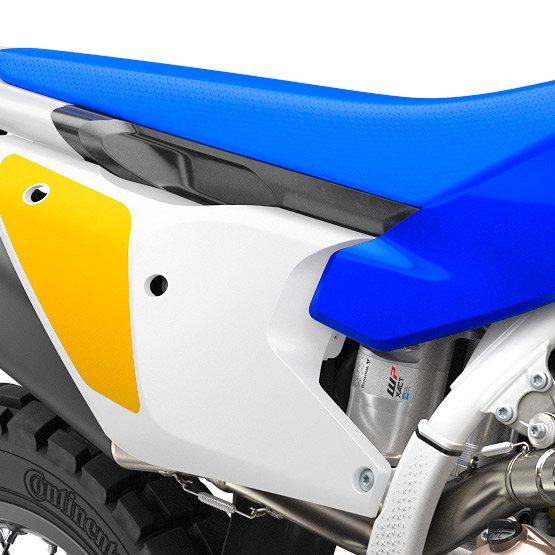 Adorned with clean, Swedish-inspired graphics, the bodywork offers advanced ergonomics allowing riders to perform at their best for extended periods of time. Adapted after countless hours of testing, the contact points and surfaces in the rider triangle offer exceptional comfort on the motorcycle. A flat seat profile offers unrestricted movement with a high grip cover ensuring riders stay firmly in place under hard acceleration. Above the side panels, recessed pockets allow for the machine to be lifted and moved quickly and easily.